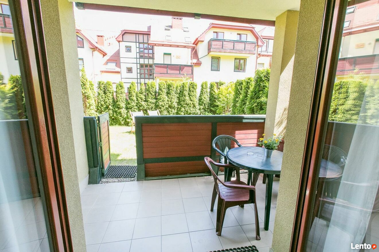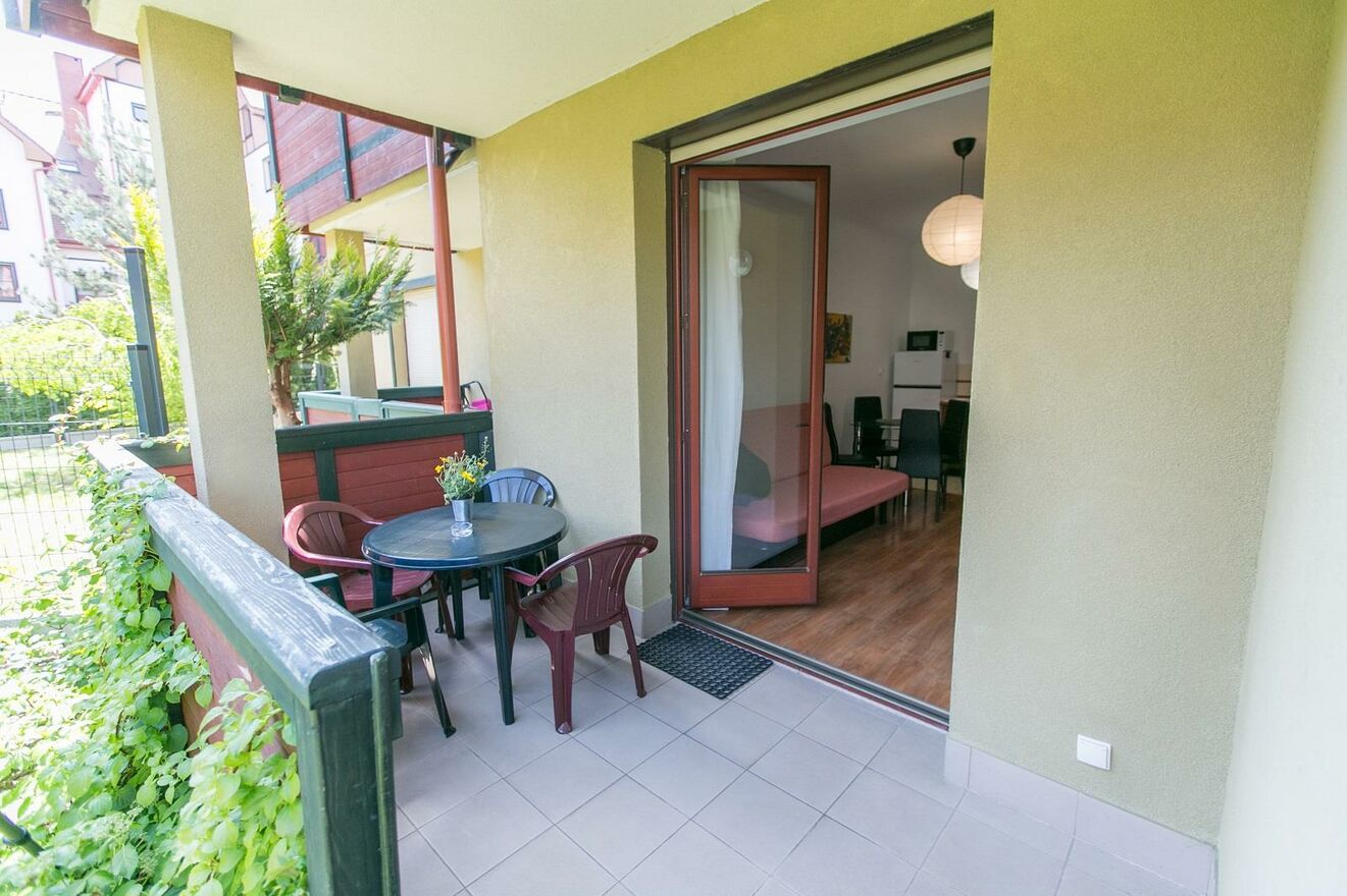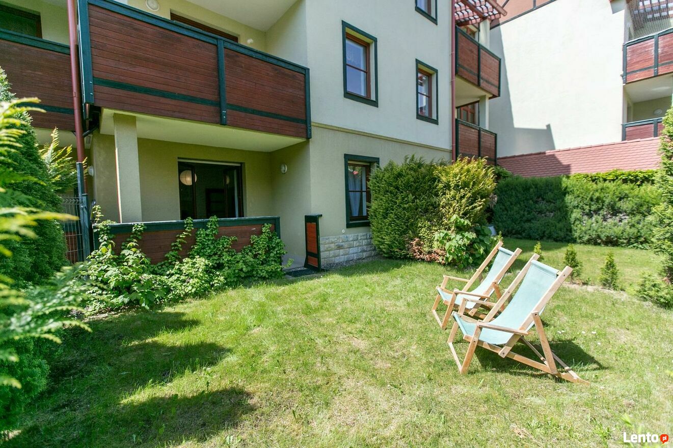 - balkon z wyjściem na słoneczną, zagospodarowaną, oddzieloną część ogrodu, który przynależy do mieszkania i jest do wyłącznego użytku właściciela,