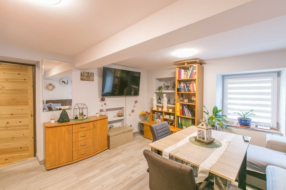 Mieszkanie składa się z trzech pokoi , kuchni. łazienki, przedpokoju, tarasu z wyjściem do ogrodu. Do mieszkania przynależy piwnica , strychu, garaż blaszak oraz dwa miejsca parkingowe przy budynku. Własne ogrzewanie ( ekogroszek), mieszkanie bezczynszowe. Teren ogrodzony , otoczony zielenią w spokojnej części uzdrowiska
